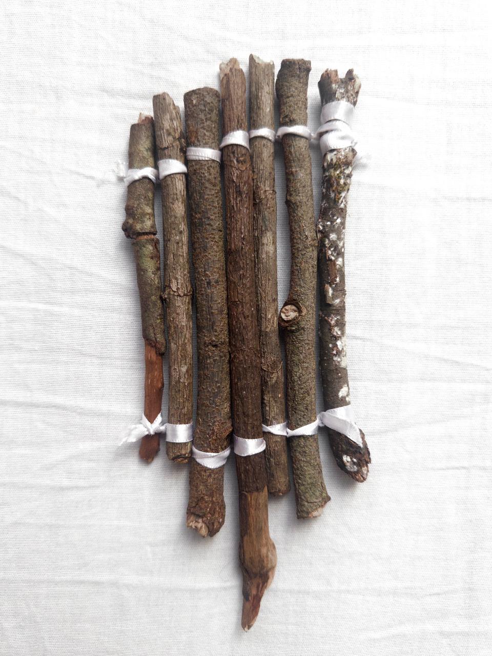palitinhos de churrasco + papel + fita adesiva + linha de pesca + bom gosto